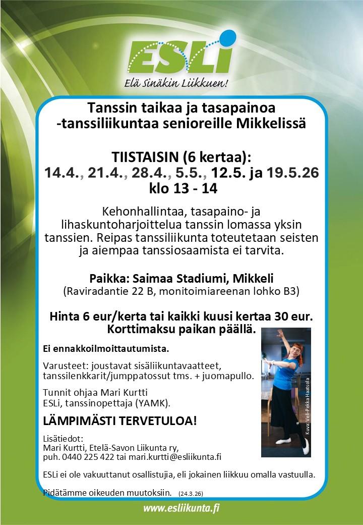 Etelä-Savon Liikunta ry Sääntömääräinen kevätkokous Aika: Tiistaina 21.4.2026 klo 18:00 Paikka: Tanhuvaaran urheiluopisto Esityslista lähetetään myöhemmin jäsenseuroille ja kuntien liikuntatoimiin