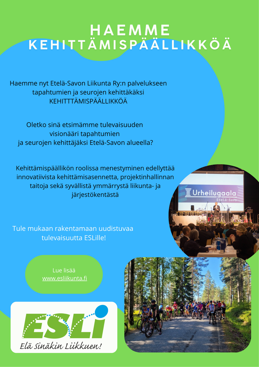 Oletko sinä etsimämme innovaattori ja kehittäjä, joka haluaa edistää liikunnallista elämäntapaa ja hyvinvointia Etelä-Savon alueella?