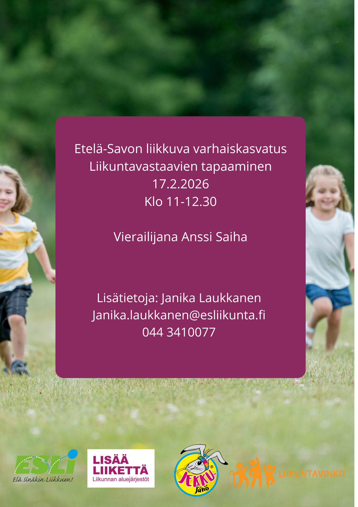 https://www.esliikunta.fi/lapsetjanuoret/liikkuva-varhaiskasvatus/liikuntavastaavien-verkostotapaamin/