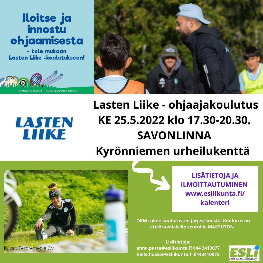 Lasten liike -koulutukseen osallistuja on osallistumassa Suomen Olympiakomitean koulutukseen, jonka Liikunnan aluejärjestöt toteuttavat. Huom! Osallistujien tiedot jaetaan myös Olympiakomitealle.